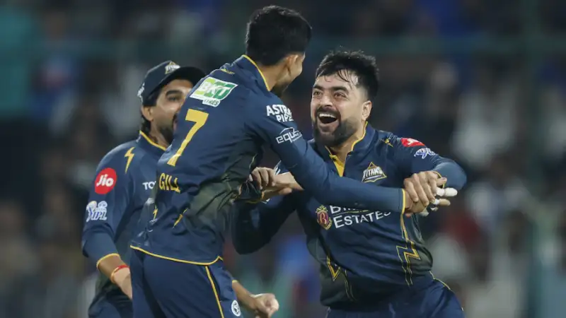 Rashid Khan was exceptional with 3/17 in four overs. Prasidh Krishna defended 13 runs off the last over, dismissed Vipraj Nigam